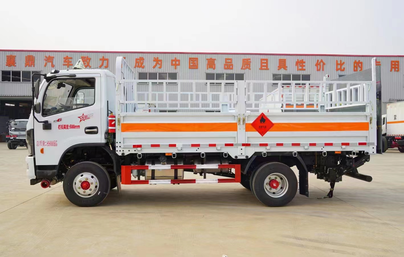 東風4.5米5噸氣瓶車選用的是多利卡專用危險品車底盤,選用的是玉柴140馬力發動機,6檔變速箱,寬敞的駕駛室,3人座。針對路況不好,需要爬山路。玉柴被稱為黃金動力。貨箱選用的是可拆卸花欄結構,底盤采用的花紋板結構,邊板選用的是四對開門形式。尾部采用的是可拆卸花欄,還可以加裝液壓尾板
