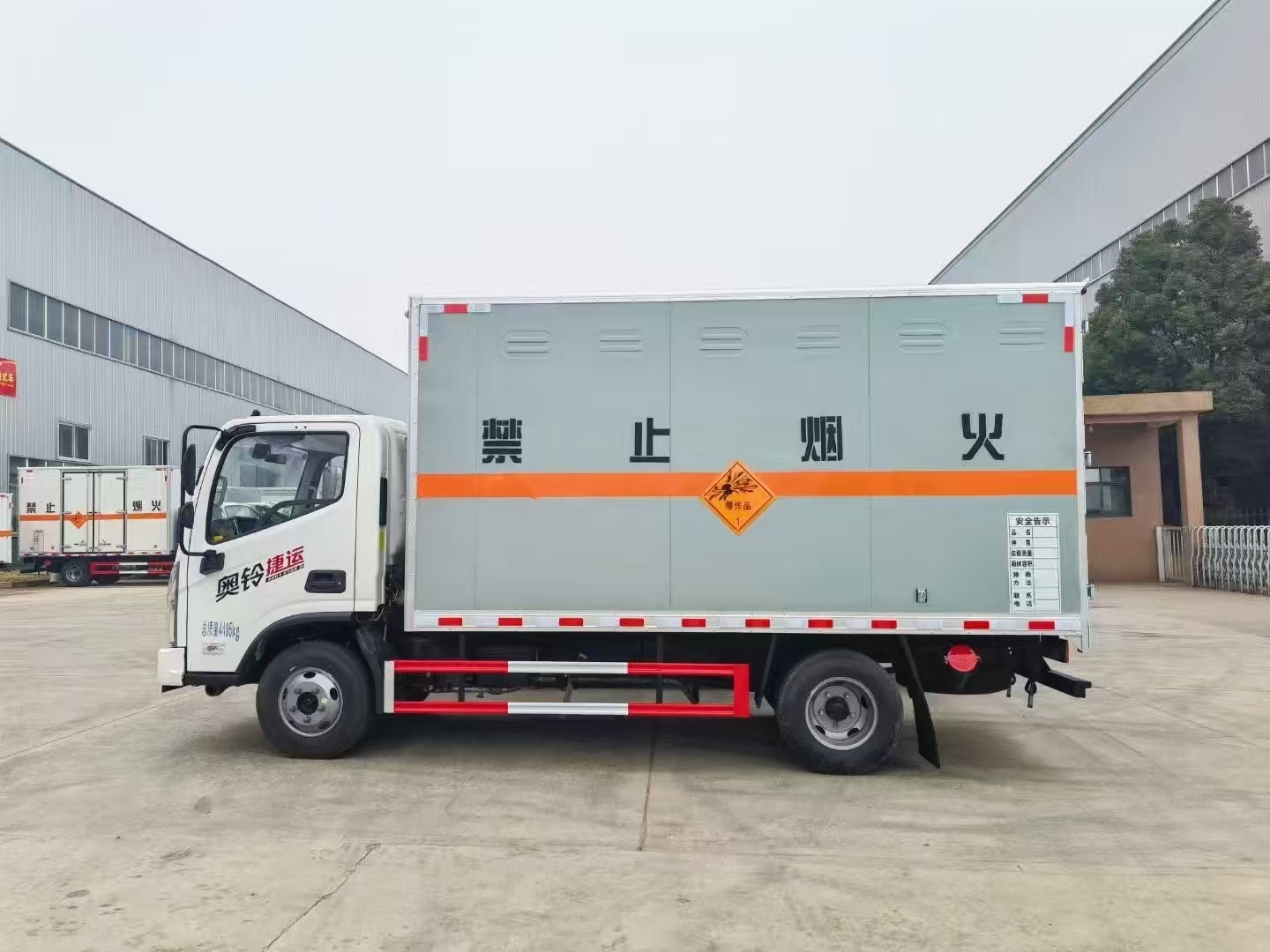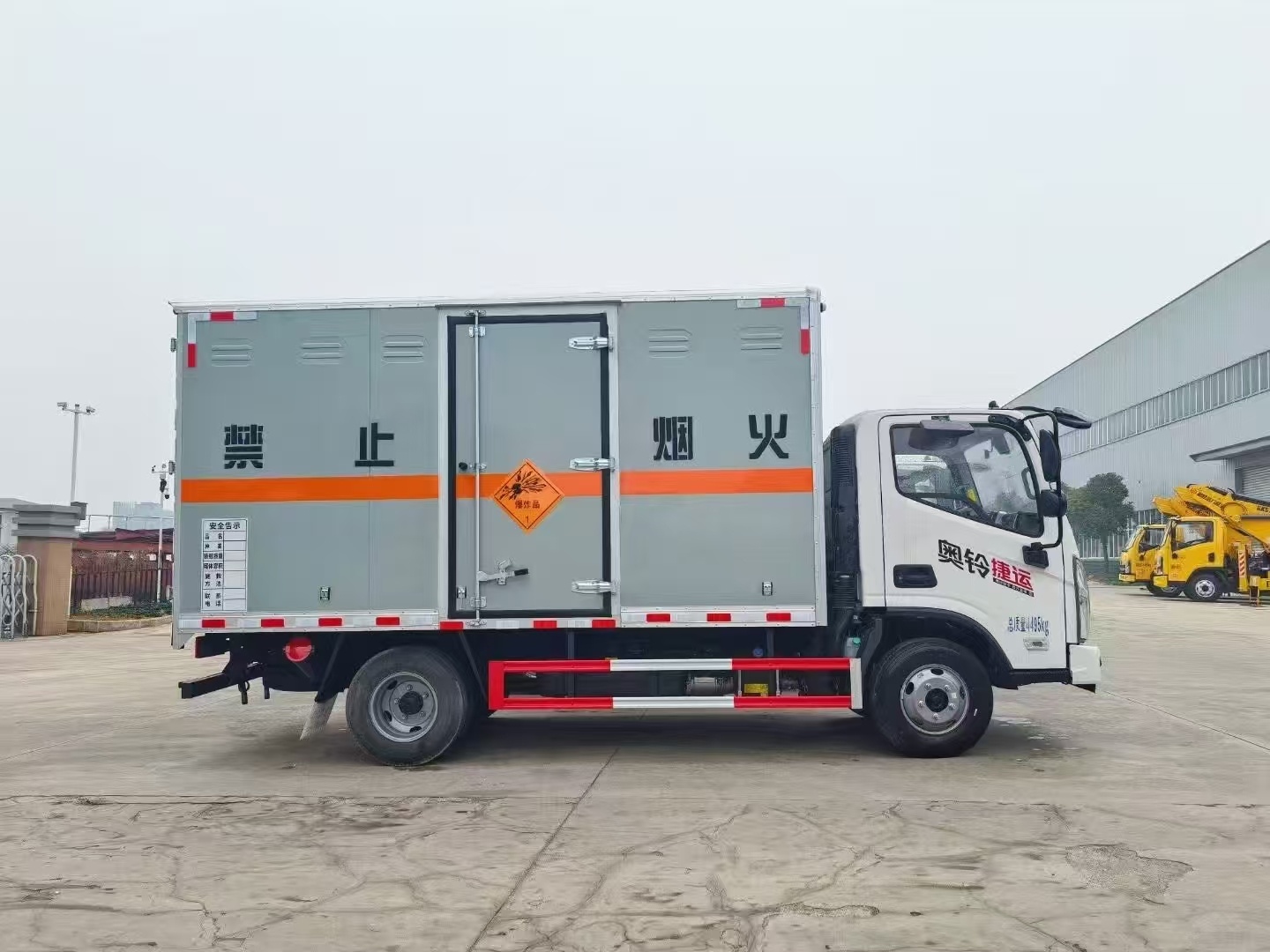 福田奧鈴國六爆破器材運(yùn)輸車選用的是新款時尚的寬體駕駛室,3人座駕駛室,可選康明斯131馬力或者云內(nèi)150馬力發(fā)動機(jī),箱體選用的是烤漆防阻燃箱體,側(cè)門可選多種開門形式,尾部可加裝液壓尾板。根據(jù)運(yùn)輸要求不同,該車貨箱內(nèi)部可用戶需求,可選擇不同款式的車型,尤其是箱體,定制要求不一樣,所設(shè)計的樣式不一樣。