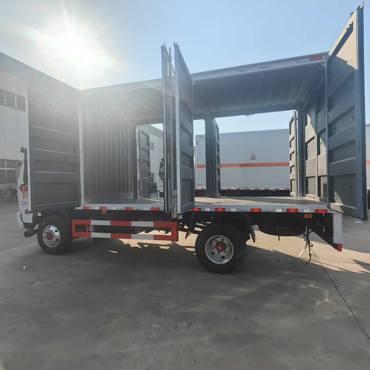 東風多利卡藍牌全開門危險品車選用的是危化品專用底盤,可選全柴136馬力發動機或玉柴140馬力發動機,匹配中控鎖、電動門窗、原廠空調。齊全的配置,豪華的內飾,給您不一樣的體驗感。箱體左右各帶兩扇門,方便開啟