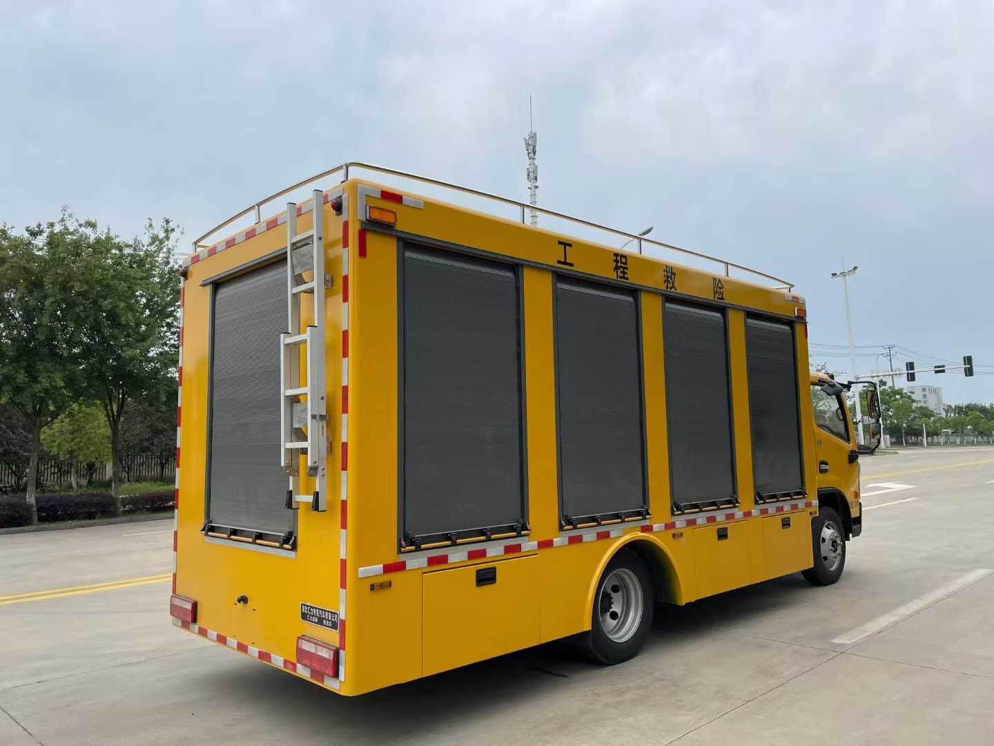 東風(fēng)多利卡1000-2000方國(guó)六救險(xiǎn)車整車型號(hào):VVV5100XXHEQT,底盤型號(hào):EQ1125SJ8CDC。該車屬于專項(xiàng)作業(yè)車,箱體采用大客車裙圍設(shè)計(jì),整車造型美觀,封閉部分可做成工具箱。配備有多種救援工具和設(shè)備,如發(fā)電機(jī)、照明設(shè)備、救援繩索、切割工具等。該車實(shí)現(xiàn)日常重大突發(fā)性應(yīng)急事件,大型保衛(wèi)工作中的快速到達(dá)現(xiàn)場(chǎng)。根據(jù)查賬的設(shè)備大小和不同用途進(jìn)行分配。裙圍設(shè)計(jì)成可翻轉(zhuǎn)的踏步,承載力強(qiáng)。