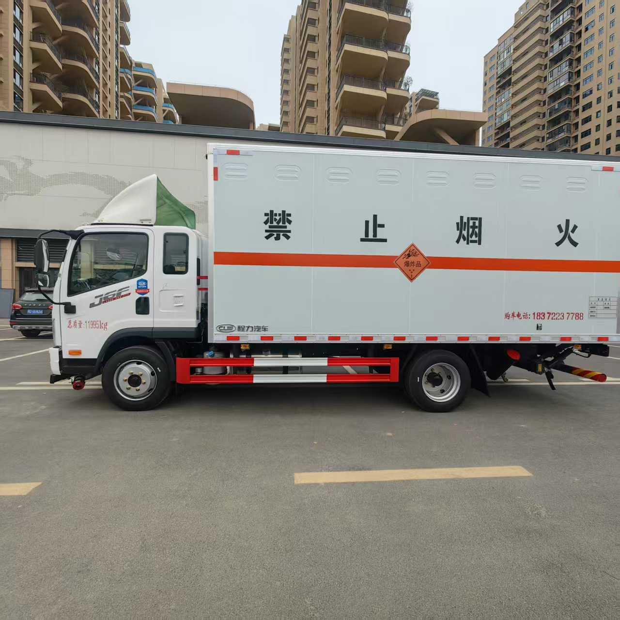 解放排半帶尾板爆破車裝載噸位可達7噸,中型車輛中的典型代表。也可以選擇單排駕駛室,貨箱容積更大。目前拉煙花的車輛裝載容積都偏向大一點的,這一款車更適合!