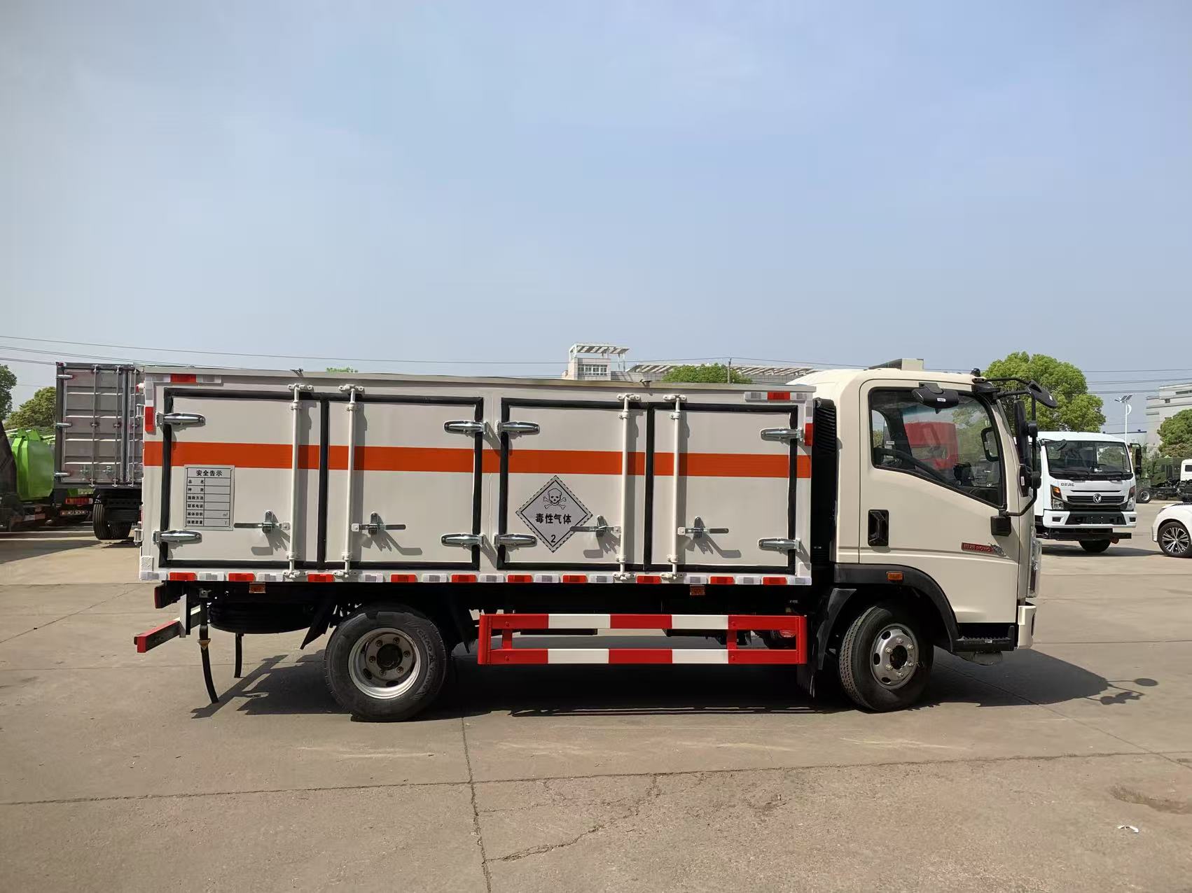 重汽豪沃國六毒性氣體廂式運輸車運輸?shù)闹饕砸郝取⒁喊变撈繛橹鳎韵潴w做的是頂部開啟樣式,不用擔心鋼瓶太重不好吊裝的問題,重汽豪沃的車型全部為您設計想到。