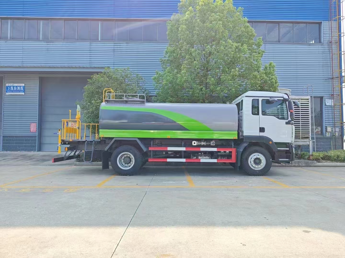 汕德卡12方灑水車選用的是環(huán)衛(wèi)車專用底盤,底盤型號:ZZ5186XXYK501GF1,軸距:4500mm。選用的是汕德卡G5W基礎(chǔ)款駕駛室;匹配的是多功能方向盤、電動電加熱后視鏡、主氣囊+副簡易型座椅、 WP4.6NQ220E61發(fā)動機。定制的是HW95508STC變速箱+HW45ZC法蘭式取力器;1094自調(diào)臂前軸(鼓);MCJ09BG自調(diào)臂單后橋(鼓);速比5.29;雙層車架(7+4/250);前后超強版多片簧(11/9+8);國產(chǎn)方向機;標準版排氣系統(tǒng);ABS(4S/4M);高位保險杠(全金屬);普通車輪;295/80R22.5輪胎(混合花紋/18PR);手電一體電動舉升;200L鋁合金油箱;中國重汽智能通B版匹配的是大功率水泵,具有自吸自排的功能,垂直吸程大于6米。帶前沖后灑、尾部帶工作平臺,可選裝蛇形霧炮,帶可調(diào)節(jié)功能。