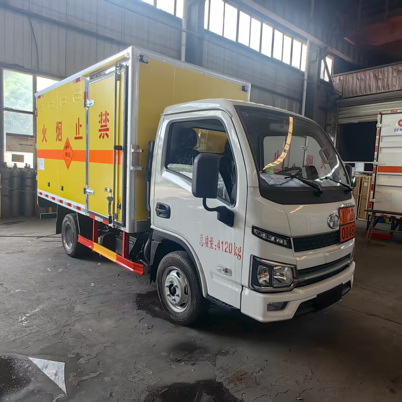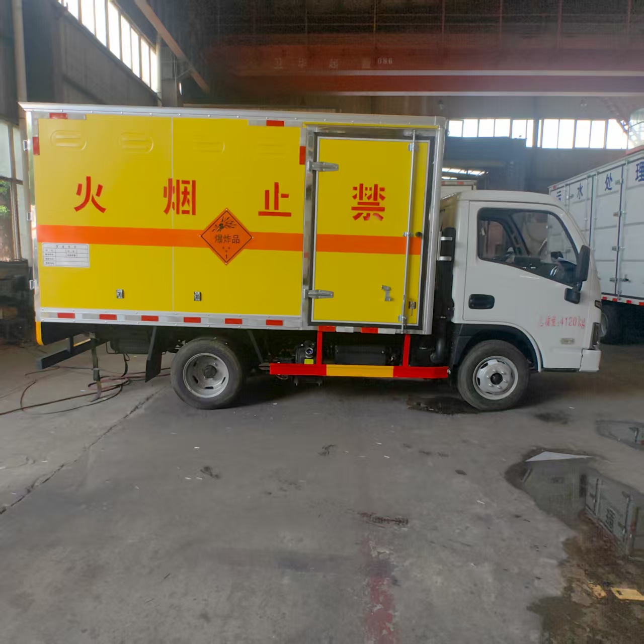 躍進S80國六帶隔倉爆破車匹配的是躍進危化品專用底盤,搭載先進柴油動力系統,輸出強勁且穩定。無論是崎嶇山路、顛簸礦區,還是城市復雜道路,都能輕松應對,高效完成運輸任務。柴油發動機具備出色的扭矩表現,爬坡、載重時動力充沛,保障運輸流程順暢,助力工程進度推進。 廂體嚴格遵循爆破器材運輸規范打造,采用防火、防盜、防靜電材料與工藝。防火性能可有效阻隔外部火源,降低安全隱患;防盜結構堅實,防止爆破物資被盜。环漓o電設計避免靜電積累引發危險,從源頭守護運輸安全。廂體表面清晰噴涂 “禁止煙火” 警示標識,時刻提醒周邊人員注意安全,強化運輸環境安全性。