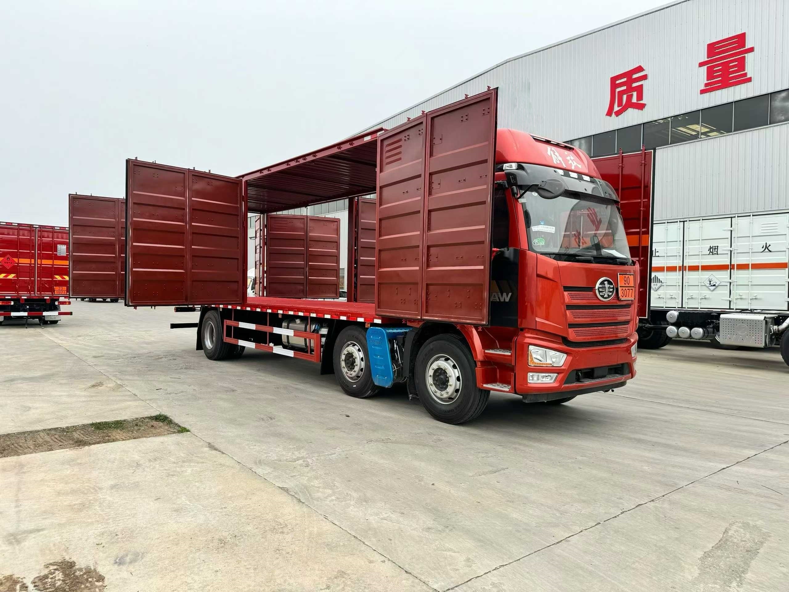 解放J6L國六前四后八四開門危險品車裝載噸位可達20噸,尾部可加裝液壓尾板,整車不超重,顏色可多選,讓您用車更無憂!
