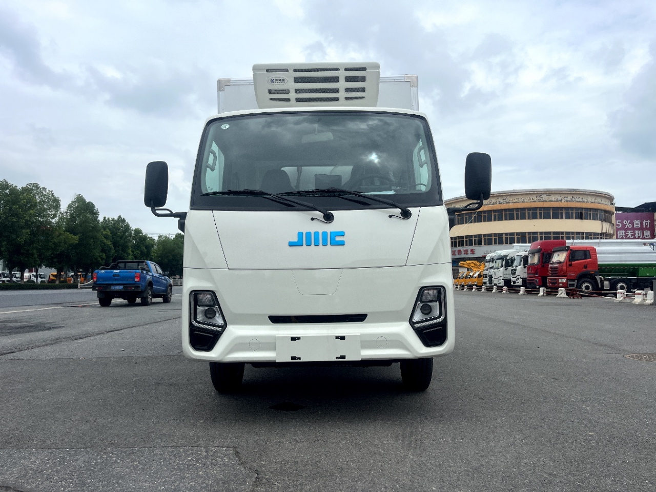 江鈴E順達(dá)純電3.7米國(guó)六冷藏車整車型號(hào): JX5030XLCTEB2BEV,底盤(pán)型號(hào):JX1030TEB2BEV,整車尺寸: 5595*2020*2845mm,箱體尺寸: 3700*1860*1850mm。3100mm軸距,針對(duì)用電需求,該車匹配的是寧德時(shí)代64度電,123馬力, 90KW ,240N.M扭矩 ,快充(選配慢充)、懷擋換擋、懸浮組合儀表、電動(dòng)空調(diào)、座椅四向調(diào)節(jié)、轉(zhuǎn)向四向調(diào)節(jié)、藍(lán)牙電話遠(yuǎn)程啟動(dòng)、智能補(bǔ)電、動(dòng)能回收,OTA升級(jí),根據(jù)多方測(cè)試,純電車型更省費(fèi)用。輪胎185/R14,油剎,CLTC百公里能耗低至18.5kwh,欄板工況續(xù)航300公里。快充電池包電量從30%充電至80%,僅需30分鐘。慢充電池包電量從20%充電至100%,8.5小時(shí)(64kwh) ,競(jìng)品則需要12小時(shí)OBC可支持更大充電功率6.6kw,競(jìng)品無(wú)慢充或功率低于3kw。