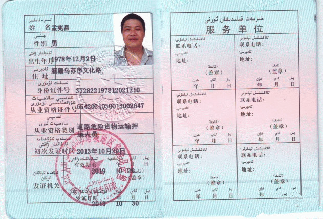 1,到這家公司(危險品運輸公司)所在的交管部門蓋章確認,你三年內無重大事故;