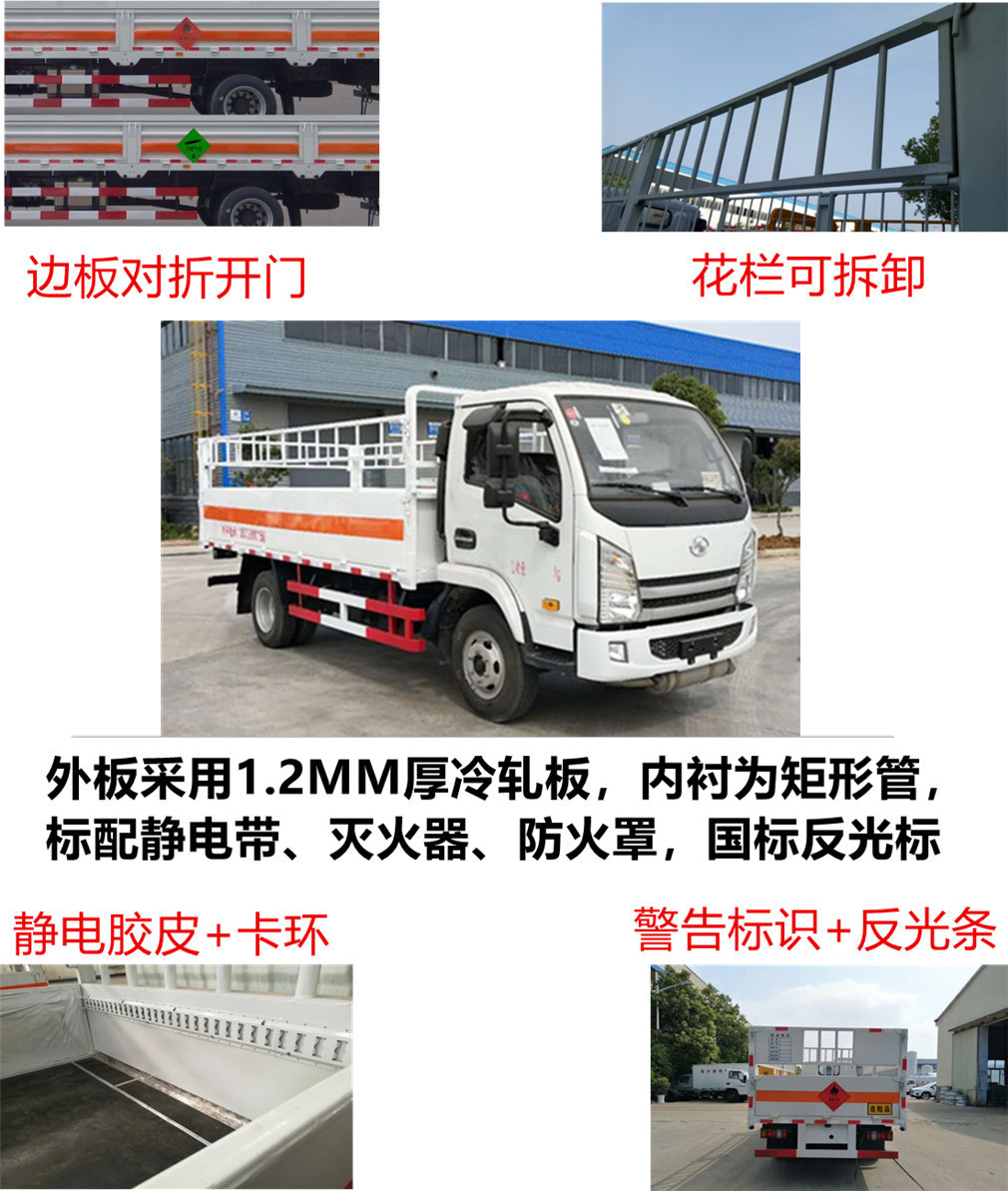 躍進依維柯高欄式氣瓶運輸車,它是根據(jù)國家有關(guān)部委對易燃氣體鋼瓶運輸?shù)囊?guī)范和用戶的要求而研制生產(chǎn),產(chǎn)品符合國防科工委關(guān)于《氣瓶運輸車安全技術(shù)條件》的要求.具有廂體強度高、防火阻燃、防止靜電火花等主要功能.專業(yè)運輸各類氣體介質(zhì)瓶裝轉(zhuǎn)運,如:液化石油氣瓶運輸車、鋼瓶配送車、煤氣瓶轉(zhuǎn)運車、氧氣瓶、二氧化碳氣瓶等。