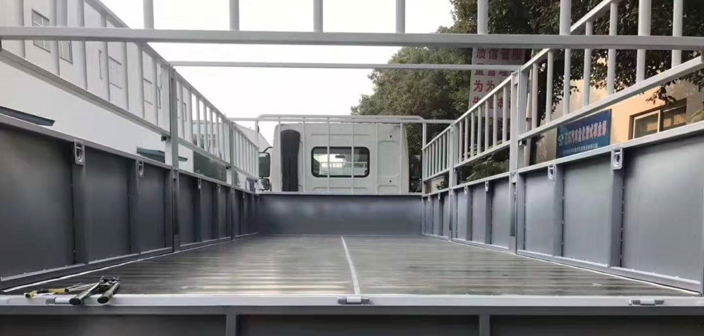 上裝廂體配置:蒼欄式貨廂,嚴格按照公告尺寸制作,邊2底3材質,底板上鋪靜電膠皮,側板上帶可卸式高欄,配備滅火器,三角頂燈,靜電拖帶等,嚴格按照國家危險品法規進行“易燃氣體”標識粘貼等 。