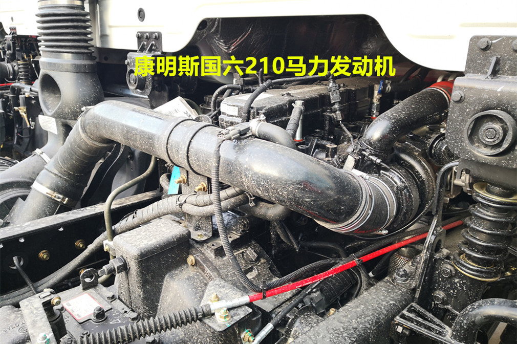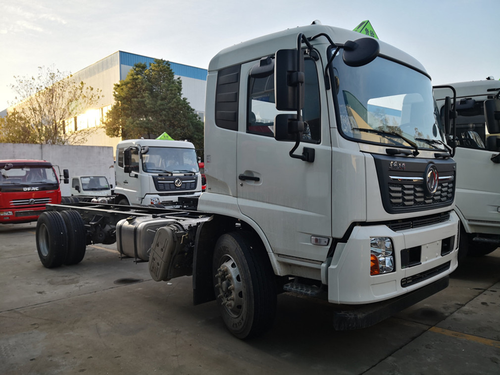 底盤配置:東風天錦KL駕駛室,陜齒八檔變速箱、前橋4.5噸、后橋10噸、250mm車架、帶空調、ABS、295真空胎、康明斯210馬力、前盤后鼓、排氣管前置、限速器(限速80KM/h)、ABS、排氣制動,后橋為空氣懸掛,前輪安裝防爆胎裝置、剎車蹄片磨損報警裝置。