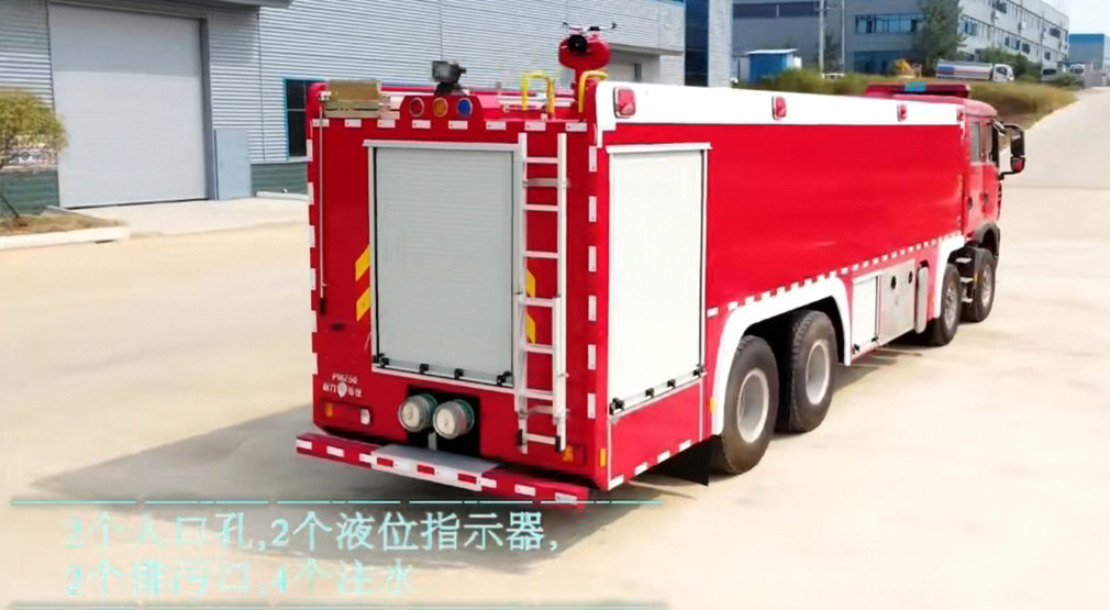 重汽豪沃前四后八國六水罐、泡沫消防車采用框架焊接,罐體內設置縱、橫防蕩板,以減少車輛行駛過程 中罐內水對罐體的沖擊;罐體前后壁板折有梯形折筋,使罐體具有足夠的強度、 剛度。罐頂設快速開啟式人孔,方便維修人員進出。罐內設有防止水泵吸水形成旋 渦從而影響流量的裝置和濾網。罐內設有不銹鋼浮球式液位指示器,可通過儀表板上液位表顯示罐內滅火劑 的容量;罐底設有帶球閥的排污口。罐體設有 2 個 76mm 溢流管,車廂兩邊各 2 個 76mm 注入口,便于其他車輛供 水加液之用。