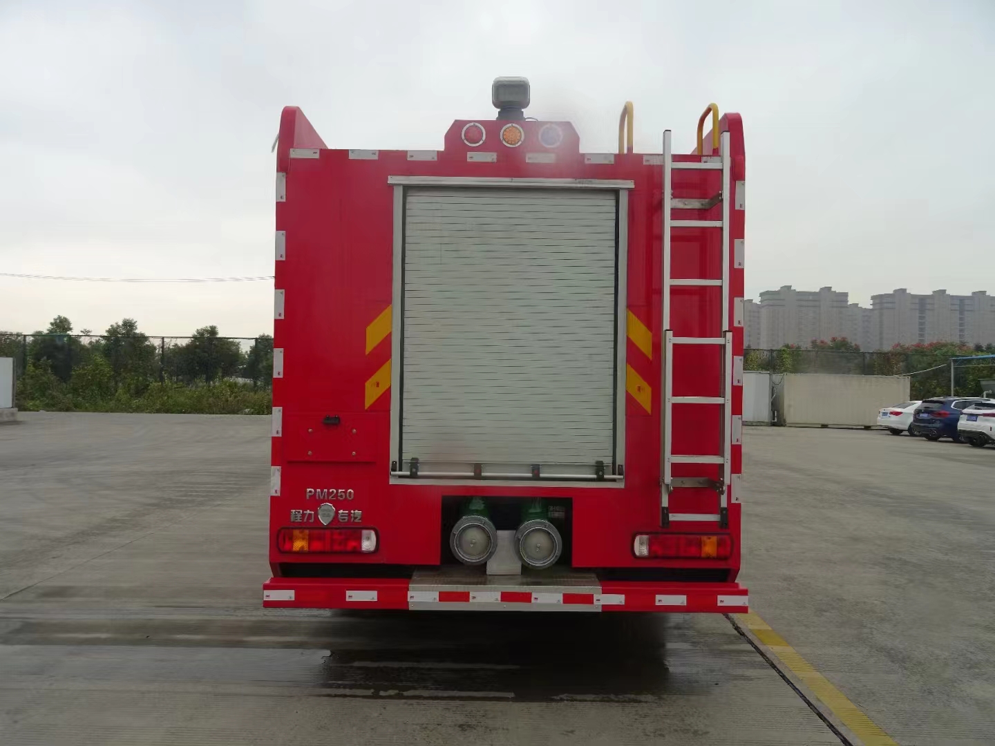 選裝右側安裝不同樣式的裝飾板和選裝后部帶拉梯架裝置。罐體總容積為24.724立方米,水罐容積:20.900立方米,水罐尺寸:5840×2450×1530mm,泡沫液罐容積:3.824立方米,泡沫液罐尺寸:1070×2450×1530mm。整體式側防護結構,后防護裝置材料:Q235A,截面尺寸:120×120mm,與車輛連接方式:螺栓連接,后防護離地高度:465mm, ABS生產企業為威伯科(上海)管理有限公司型號為4460046300。主要專用裝置有消防泵、消防炮。 |