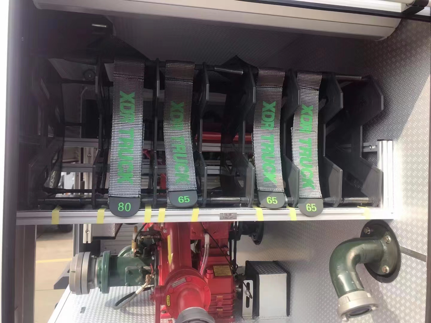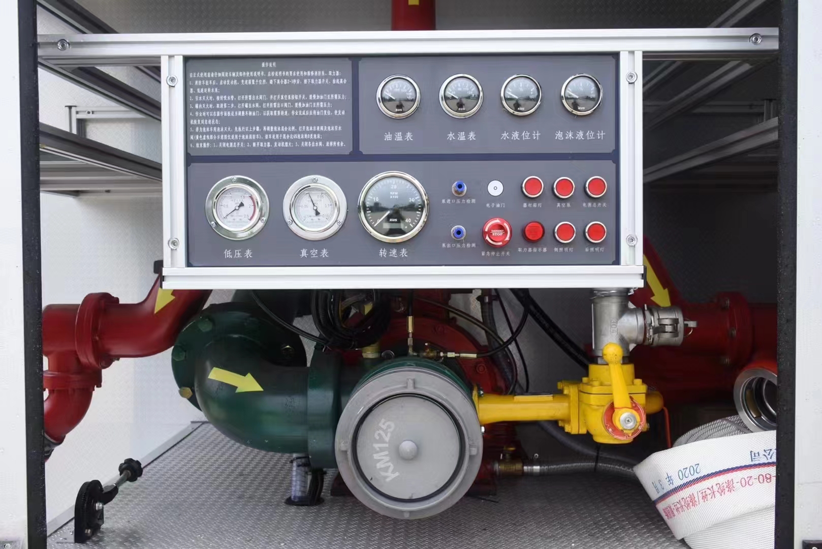 駕駛室內設備:除原車設備外,加裝取力器控制開關、100W警報器、警燈開關等。